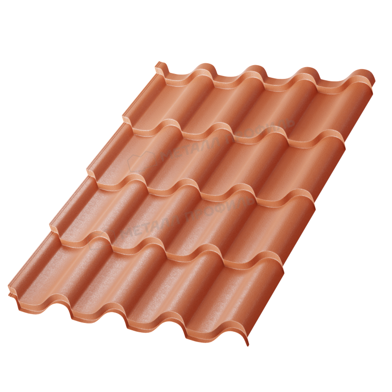 Металлочерепица Монтерроса-S с покрытием VikingMP® E в цвете RAL 8004 (коричневая медь) представляет собой надежный кровельный материал от компании Металл-Профиль. Толщиной 0,5 мм, она сочетает эстетику классической черепицы с прочностью металла, идеально подходя для современных крыш. Этот продукт обеспечивает долговечность и защиту от внешних факторов, подчеркивая стиль вашего дома.