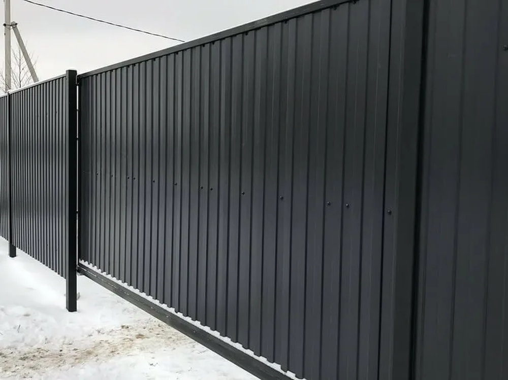 Профлист С-8 с толщиной 0,4 мм и полиэстеровым покрытием в оттенке RAL 7024 представляет собой надежный материал для ограждений и фасадов. Он сочетает прочность металла с эстетичным внешним видом, устойчивым к атмосферным воздействиям. Идеален для быстрого монтажа и долговечного использования в различных климатических условиях.